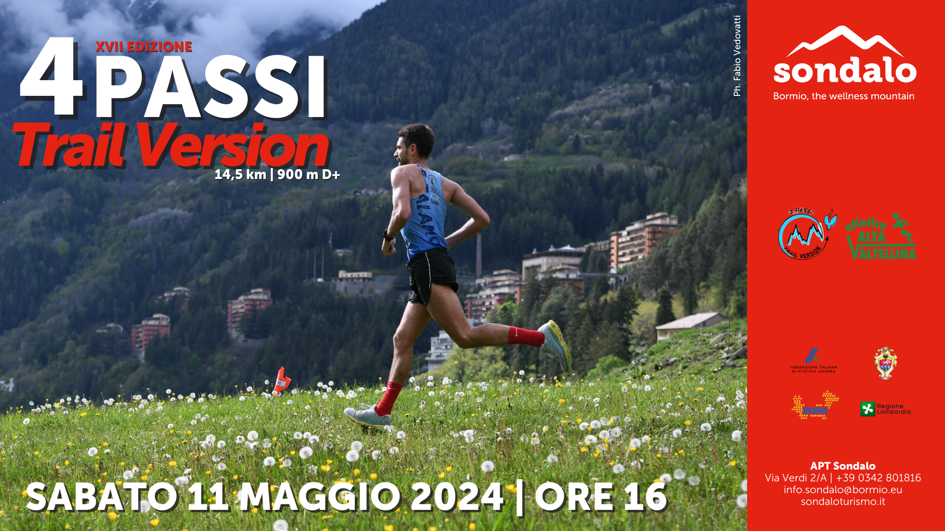 La "4 passi" sarà valida, inoltre, come prova del circuito di corsa in montagna "GRAND PRIX DELLA VALTELLINA 2024"